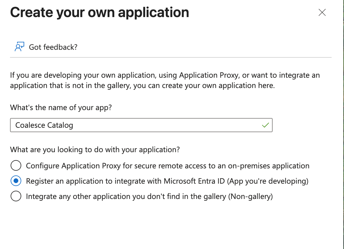 You'll register an enterprise application that acts as the SAML identity provider for Catalog.