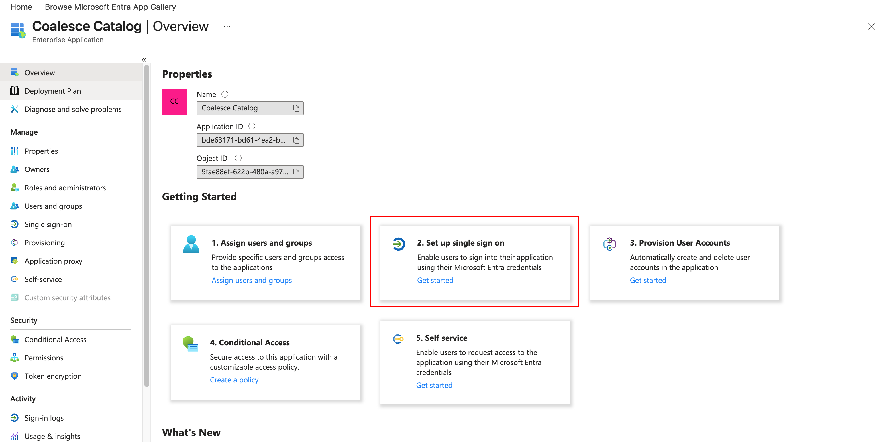On the Overview page, select 2. Set up single sign on.