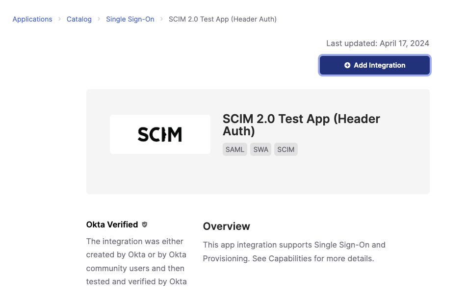 Please note that this setup requires you to get in touch with a Catalog ops (catalog-support@coalesce.io or Slack) to generate and share with you the required SCIM token you will use to login your SCIM app against Catalog’s SCIM API.